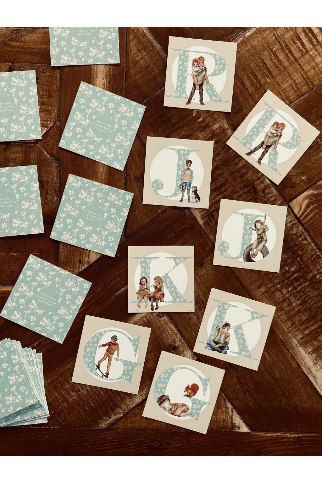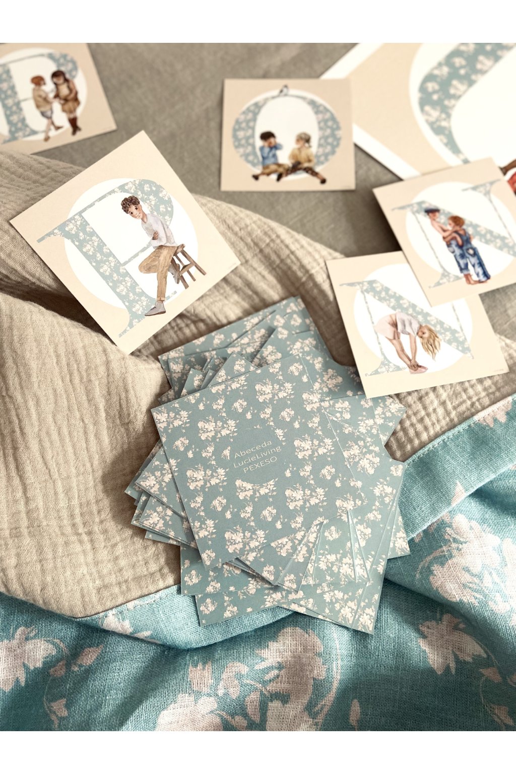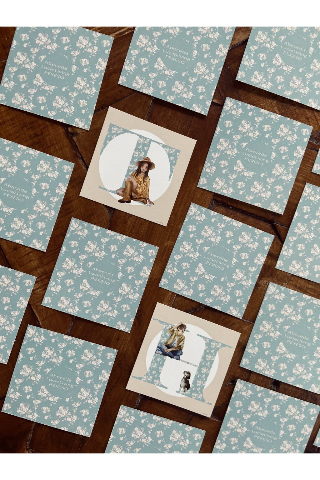 Karetní hra 52 písmenek s obrázky pro kluky nebo pro holky. Rozměr 8x8 cm.